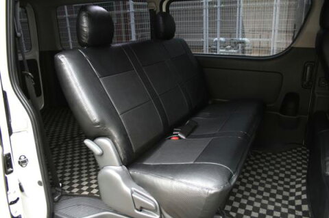 適合車種 ハイエース レジアスエース 200系 平成16年8月〜現行 S-GLグレード 5人乗り車輌に適合 (標準・ワイドボディ共に対応) 商品説明 商品内容:運転席シートカバー×2・助手席シートカバー×2・リアシートカバー×2・ヘッドレストカバー×4 運転席・助手席には背面ポケットも付属しております。